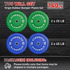Premium Color-Coded Rubber Bumper Plates Set 2″ Reducing Olympic Weight 140LB