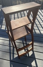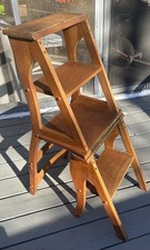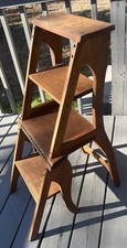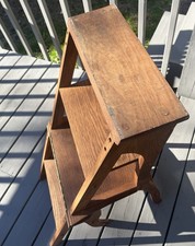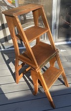 Primitive Antique Oak Solid Wood Metamorphic Folding Library Chair Step Ladder