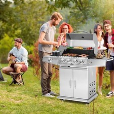 Propane Gas Grill 4 Burners Stainless Steel Grill Cart Outdoor Cooking BBQ 4+1