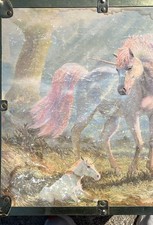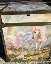 RARE 1980s Large Unicorn Cube Storage Trunk Box 16×16″