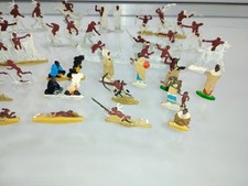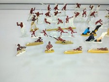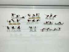 RARE 30+ Vtg German Flat Lead Figures Native American Camp 9 Unseparated Strips