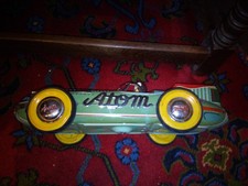 RARE 50s BIG YONEZAWA ATOM CAR TINPLATE RACER JAPAN TIN TOY space age rocket jet