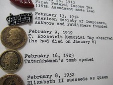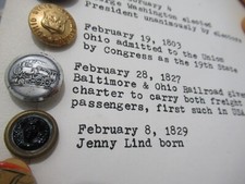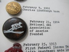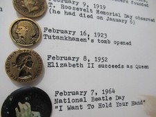 Rare Antique Buttons+ Collection, Commemorating Historic Events of February