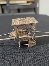 Rare Antique Cumwo HongKong Chinese Export Silver Filigree Miniature Sedan Chair