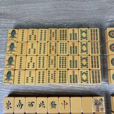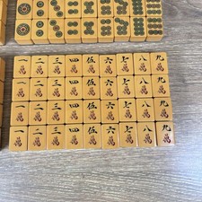 Rare Antique Mahjong Tiles Set Yellow Bamboo Back 25mm Vintage Collection