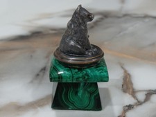 Be the first to review “RARE ANTIQUE RUSSIAN SILVERED BRONZE BEAR CUB SCULPTURE RUBY EYES MALACHITE BASE” Cancel reply