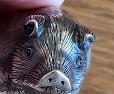 RARE! Pair Faberge Julius Rappoport 88 Grade Silver Pigs with Garnet Eyes! 62G!!