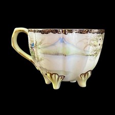 RARE Unmarked Antique Japanese Geisha Ware Demitasse Mt Fuji Gold 4-footed