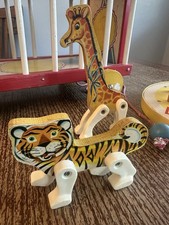 Rare Vintage 1960’s Wooden Fisher Price Circus Wagon Train Animals Ladders