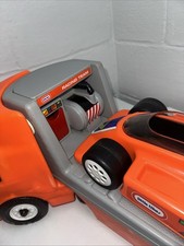 RARE VINTAGE 24” LITTLE TIKES ORANGE TRUCK FLAT BED TRAILER RACE CAR TEAM HAULER