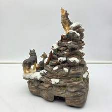 Rare Wolf Pack Mountain Waterfall Music Box – Heavy Resin – 10″ Tall – Working