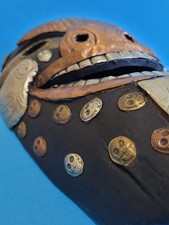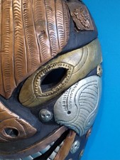 Rare Wooden Face Mask with copper brass lining from Nepal, AUTHENTIC VINTAGE.