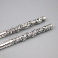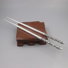 Real 999 Fine Silver Chopsticks Dragon & Phoenix Handle Healthy Chopsticks