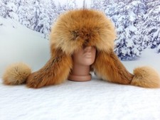 Real red fox fur women winter trapper hat Ushanka style Ears flap