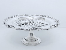 REED & BARTON KING FRANCIS ORNATE ROCOCO CAKE STAND + SHEFFIELD SERVING SET