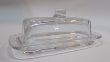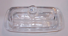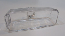 Retro 1970’s Heavy Clear Glass Butter Margarine Stick 8″ Covered Dish w Knob