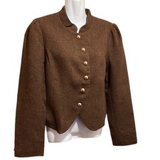 Rihoas Solid Retro Blazer Size Large Brown Tweed Vintage Career Old Money NWT
