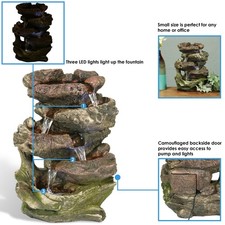 Rock Falls 5-Step Indoor Water Fountain with LED Lights – 14 in by Sunnydaze