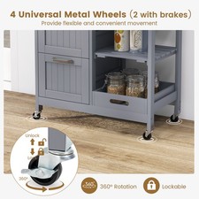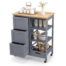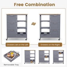 Rolling Kitchen Island Utility Storage Cart w/ 3 Storage Drawers & Shelves Grey