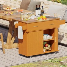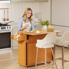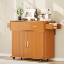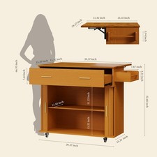 Rolling Kitchen Island with Drop Leaf Countertop&Ample Storage (Yellow Walnut)