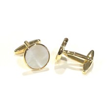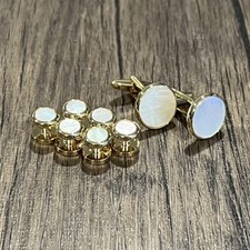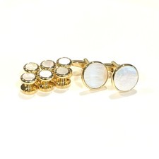 Round Mother Pearl Cufflinks And Shirt Studs (6pcs) Set Men Wedding Gift In Box