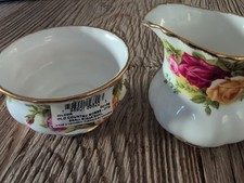 Royal Albert OLD COUNTRY ROSES Creamer and Open Sugar Bowl 0ld Mark England Vtg