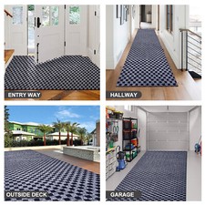 Runner Rug Hallway Non Slip Rubber Back Custom Size as Carpet Doormat Checkered