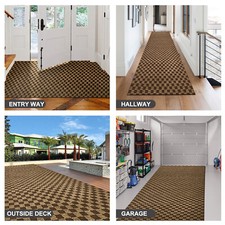 Runner Rug Hallway Non Slip Rubber Back Custom Size as Carpet Doormat Checkered