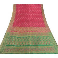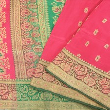 Sanskriti Vintage Pink Wedding Sarees Blend Silk Banarasi/Brocade Fabric Sari