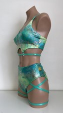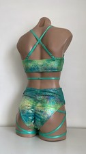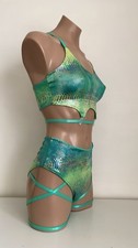 Schminke ⚜️ Pole dance wear set jade green rainbow snake baby evil’s top bottoms
