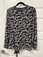 Scoop Womens Blouse Black/White Print Long Sleeve XL 16-18