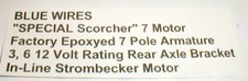 Scorcher 7 Slot Car Motor Strombecker Epoxied Armature Blue Wires # 8389 NOS