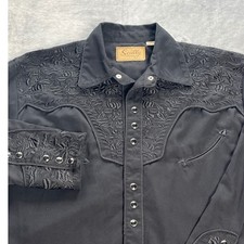 Be the first to review “Scully Western Shirt Black Embroidered Pearl Snap Long Sleeve Mens Medium”