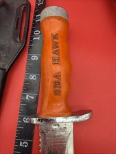 SEA HAWK Orange DIVER Stainless Steel KNIFE with AQUA-LUNG Black SHEATH 13¼”Long