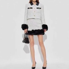 Self-Portrait Womens Autumn Winter Temperament Plaid Jacket High Waist Skirt Set