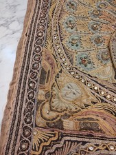 Sequin PEACOCKS Burmese KALAGA Hand-Embroidery Tapestry Wall Hanging 35 x 26 In