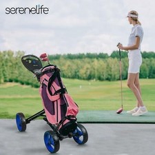 SereneLife 4 Wheel Lightweight Folding Golf Push Cart w/Foot Handle Brake