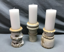 Set 3 Vintage Turned Wood Shabby Chunky 5″ Candle Holders Chic Old 1808-24B
