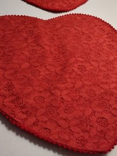 Set of 2 Red Heart Placemats Lacey Cloth Anniversary/Valentines Day