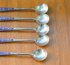 Set of 5 Vintage Korean 70% Silver Souvenir Demitasse Collector 4.5″ Tea Spoons