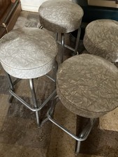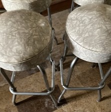Set Of Four Mid Century Modern Vinyl And Chrome Swivel Stools EX Condition