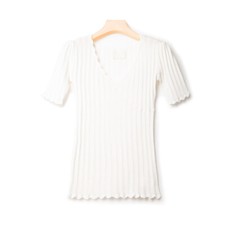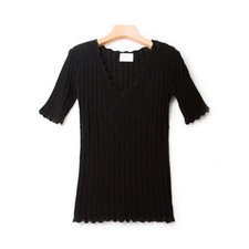 Be the first to review “Sezane Mara Petal Edge Large V-Neck Fancy Short Sleeve Sweater Sweater Top”