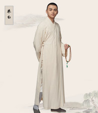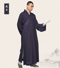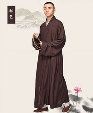 Shaolin Buddhist Monk Dress Meditation Cotton Linen Long Robe Gown Kung Fu Suit
