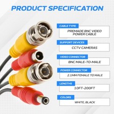 Siamese Cable CCTV Security Camera BNC DC Power/Video Wire Black/White Pack LOT