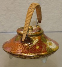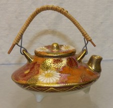 SIGNED Japanese Satsuma Miniature Teapot Thousand 1000 Flower Antique Vintage