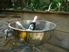 Silver Floor Standing Bowl Champagne Ice Bucket Distressed Look Wine Cooler