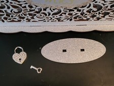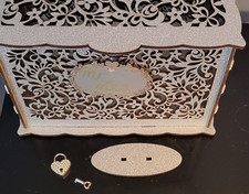 Silver Glittered Wedding Card Box with Heart Shape Lock & Mr. and Mrs Sign