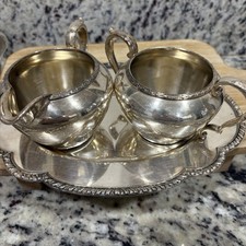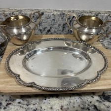 Silver Plated Items Lot -Made By Wallace – 5 Pieces – Creamer, Sugar, Tray, Bowl