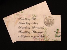 Sixpence Enclosure Card for Bride Authentic English Coin Wildflowers Keepsake