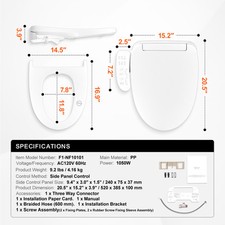 Smart Bidet Toilet Seat Elongated 3 modes Heated Auto Deodorization Nightlight
